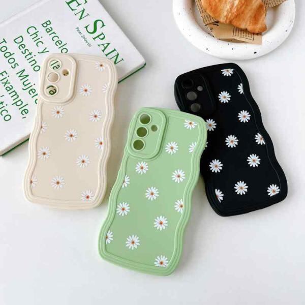ZTOFERA Samsung Galaxy S24 5G ケース、波状フレームケース、デイジーパターンのかわいい電話ケース Samsung S242