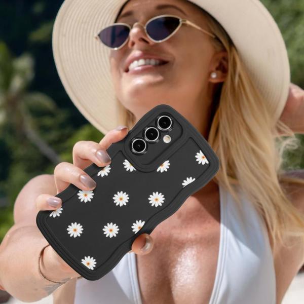 ZTOFERA Samsung Galaxy S24 5G ケース、波状フレームケース、デイジーパターンのかわいい電話ケース Samsung S24 用、ブラック