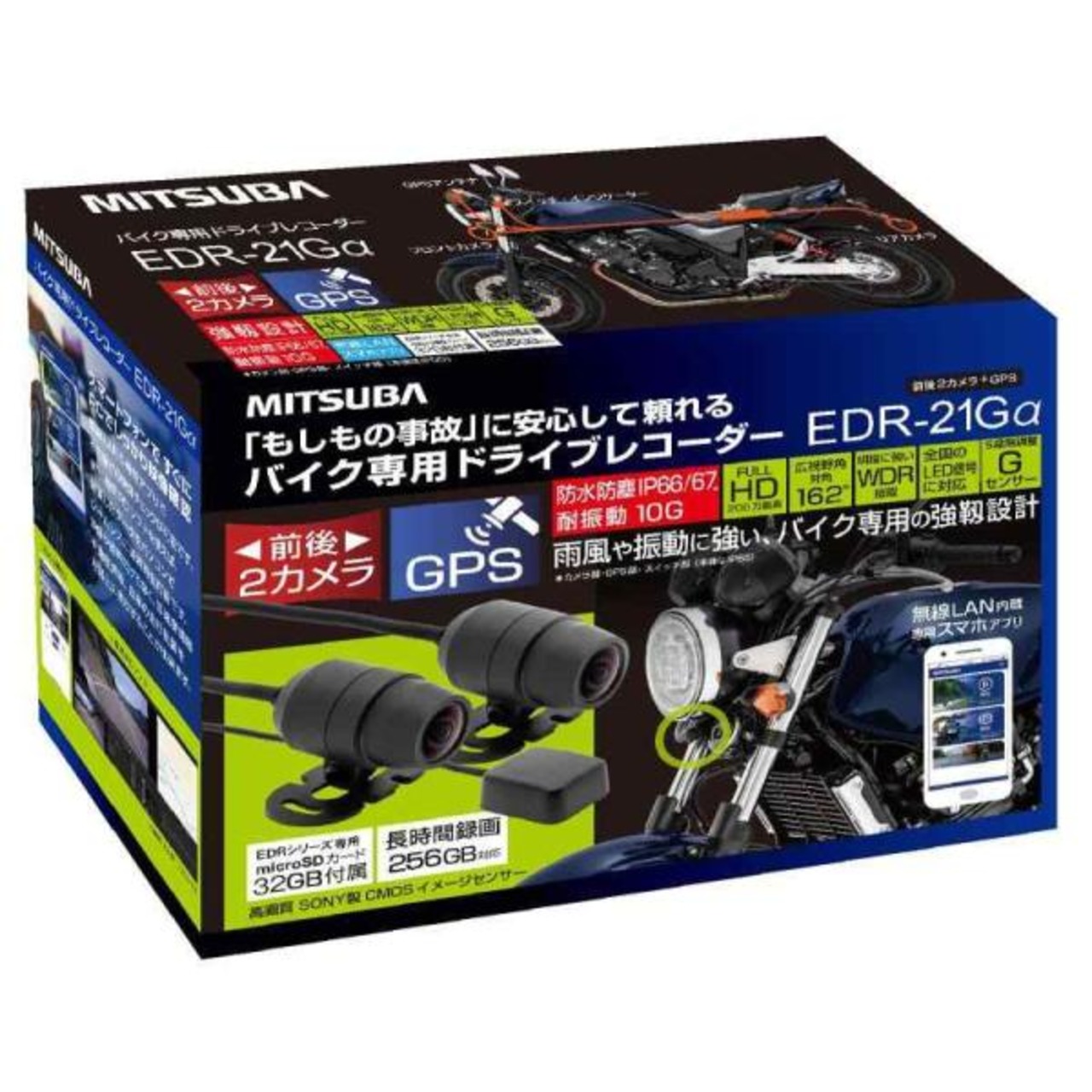 MITSUBA(ミツバサンコーワ) バイク専用ドライブレコーダー 前後2カメラ+GPS搭載スペックモデル EDR-21GA