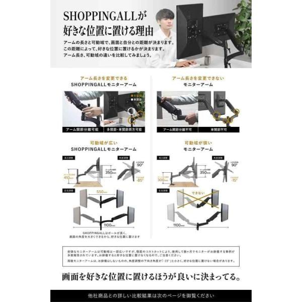 SHOPPINGALL 【モニターを好きな位置に置ける】【他社よりモニターが見やすい】 モニターアーム デュアル 2画面 ディスプレイアーム ガス スプリング 【32インチ対応 耐荷重0〜8kg×2】 グロメ