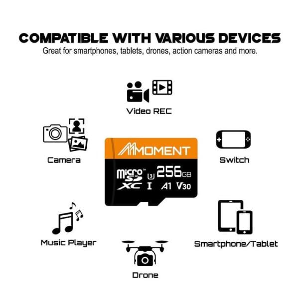 MMOMENT マイクロSDカード 256GB Nintendo Switch対応/MicroSDXCカード / 4K対応 / Class10 / UHS-I / U3 / A1 / V30 / SDアダプター付【読込最大95MB/s】