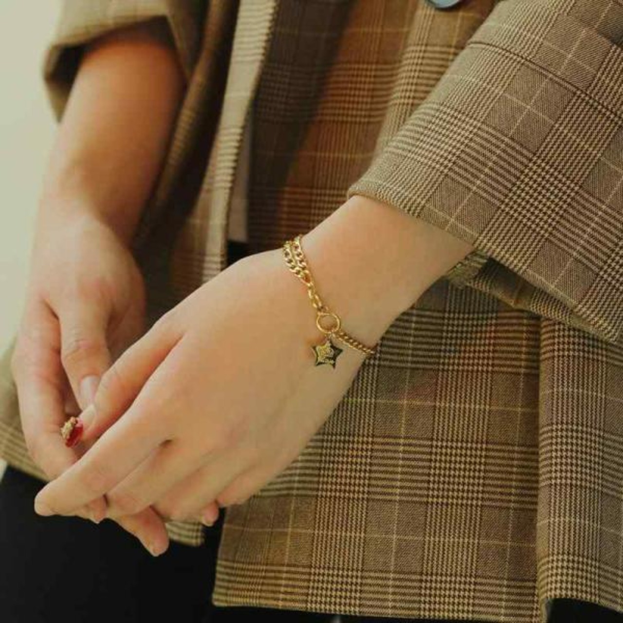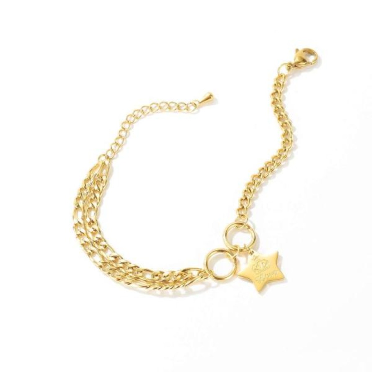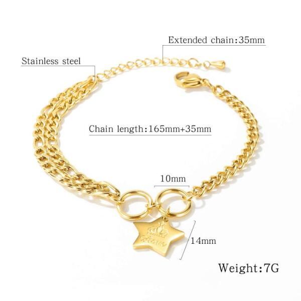 Rockyu ブレスレット レディース ゴールド 18金メッキ チタン製ブレスレット シンプルデザイン スター 星ブレスレット 2連 喜平チェーン 腕1