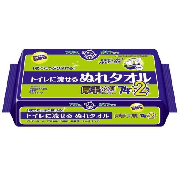 アクティ トイレに流せる ぬれタオル 大判・厚手 20×20cm 76枚 (片手でらくらく取出し口ストッパー)1
