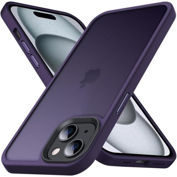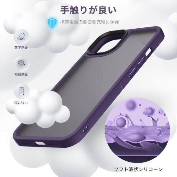 Anqrp iPhone 15 用 ケース 半透明 マット 耐衝撃 滑り止め 米軍MIL規格 指紋防止 スマホケース アイフォン 15 ストラップホール付き ワイヤレス充電対応 アイホン15 カバー 6.1インチ パープル