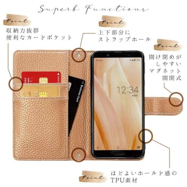 手帳部分と内側ケース部分は接着しておりますが、強くめくったりひっぱると剥がれる場合がございます。内側のケースは黒TPUを使用し、本体をカバーします。電源ボタンや音量ボタンなどは、黒TPUケースの上から押す仕様となっております。カメラ部分などは機種に合わせた開口部が開いております。