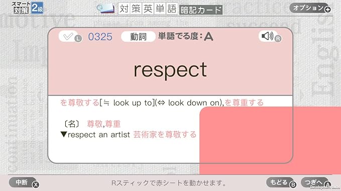 英検対策で重要な単語力もトレーニング。赤シート機能によるカード学習と4択問題で学習可能!