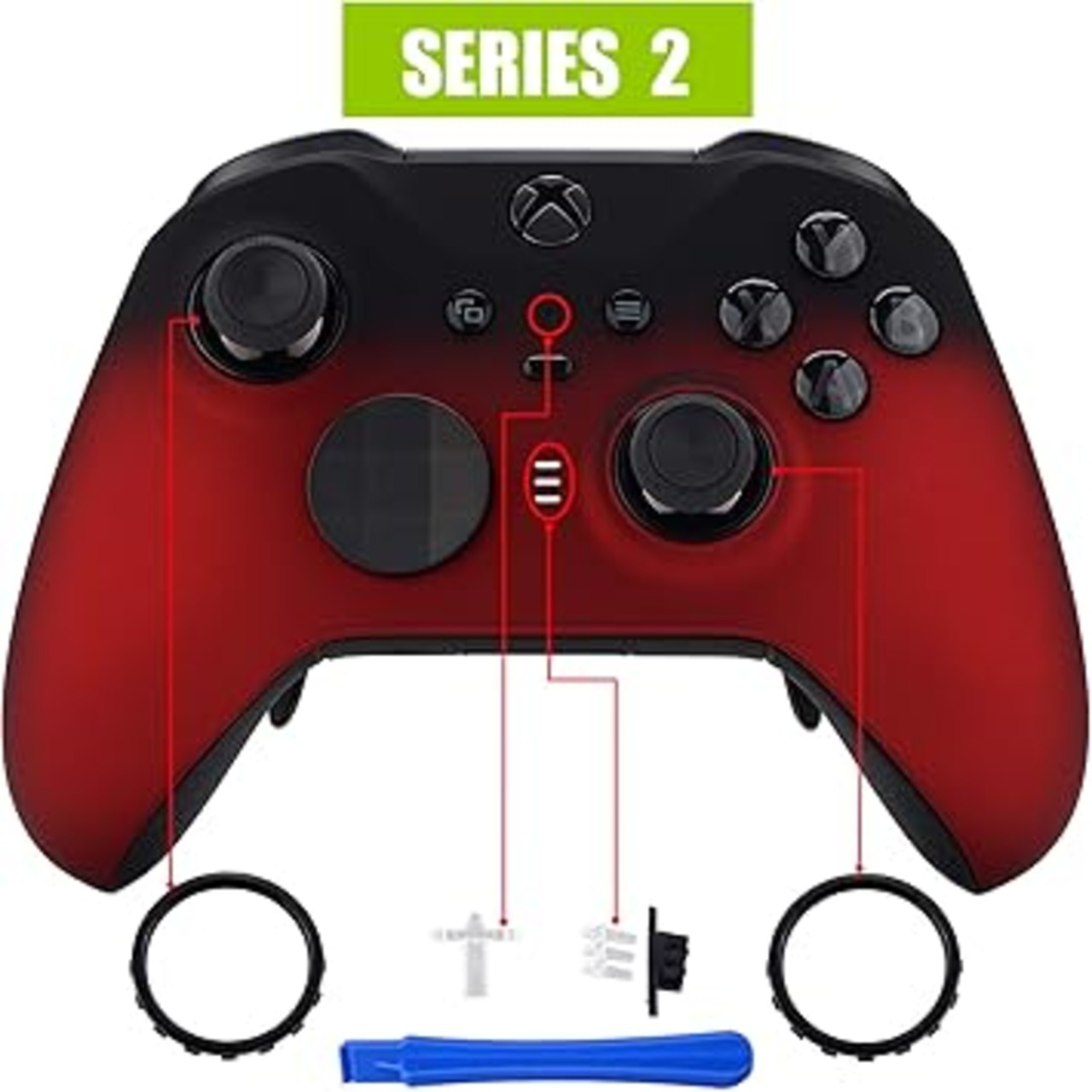 eXtremeRate xbox one elite series 2 (モデル1797)コントローラーに対応用無地の交換フェースプレートシェル、xbox elite series 2 coreコントローラーに対応用ソフトタッチ正面シェルケース&アクセントリング【スカーレッドとブラックのグラデーションカラー】