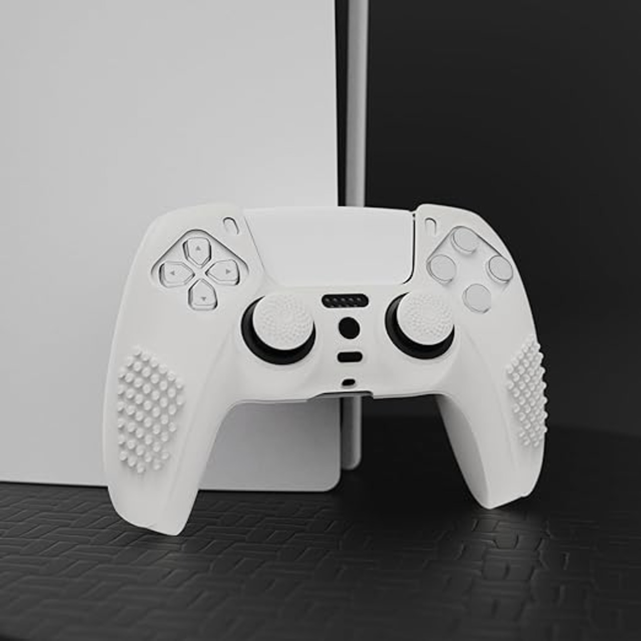 eXtremeRate PlayVital ps5コントローラーに対応用保護カバー、滑り止めシリコンスキンケースカバー、ps5コントローラー対応用人間工学に基づいたソフトラバー、保護ケース親指スティックキャップ付き【3Dスタッズエディション-白い】