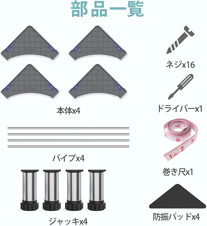 冷蔵庫 置き台 4足 超大サイズ 大きなサイズ対応 DEWEL かさ上げ台 伸縮式 高さ調整 縦型ドラム式洗濯機にも対応 騒音対策 異音振動軽減 防振パッド
