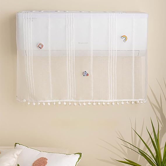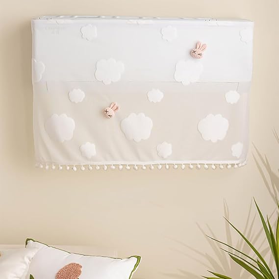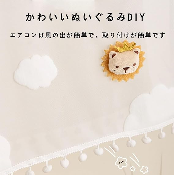 エアコン風よけカバー エアコン風よけ 壁掛け式 エアコンルーバー レースのカーテン 循環送風 取り付け簡単 冷房/暖房対応 結露対策 直撃風対策 風除け 穴あけ不要 家庭用エアコン 多機種対応 ぬいぐるみ飾り (ウサギ匹)