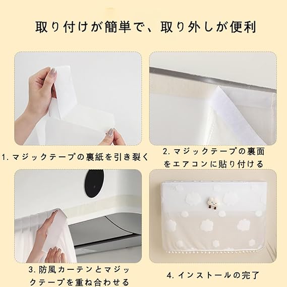 【設置が簡単】エアコンのフロントガラスは複雑な構造を必要とせず、マジックシール計を採用し、エアコンに損傷を与えることなく、定期的に整理するために分解しやすい。ネジやドリルが不要で、天井や壁を傷つけることがありません。