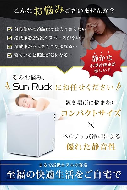 SunRuck 1ドア電子冷蔵庫 48L ホワイト 冷庫さん ペルチェ方式 小型 静音 SR-R4805W