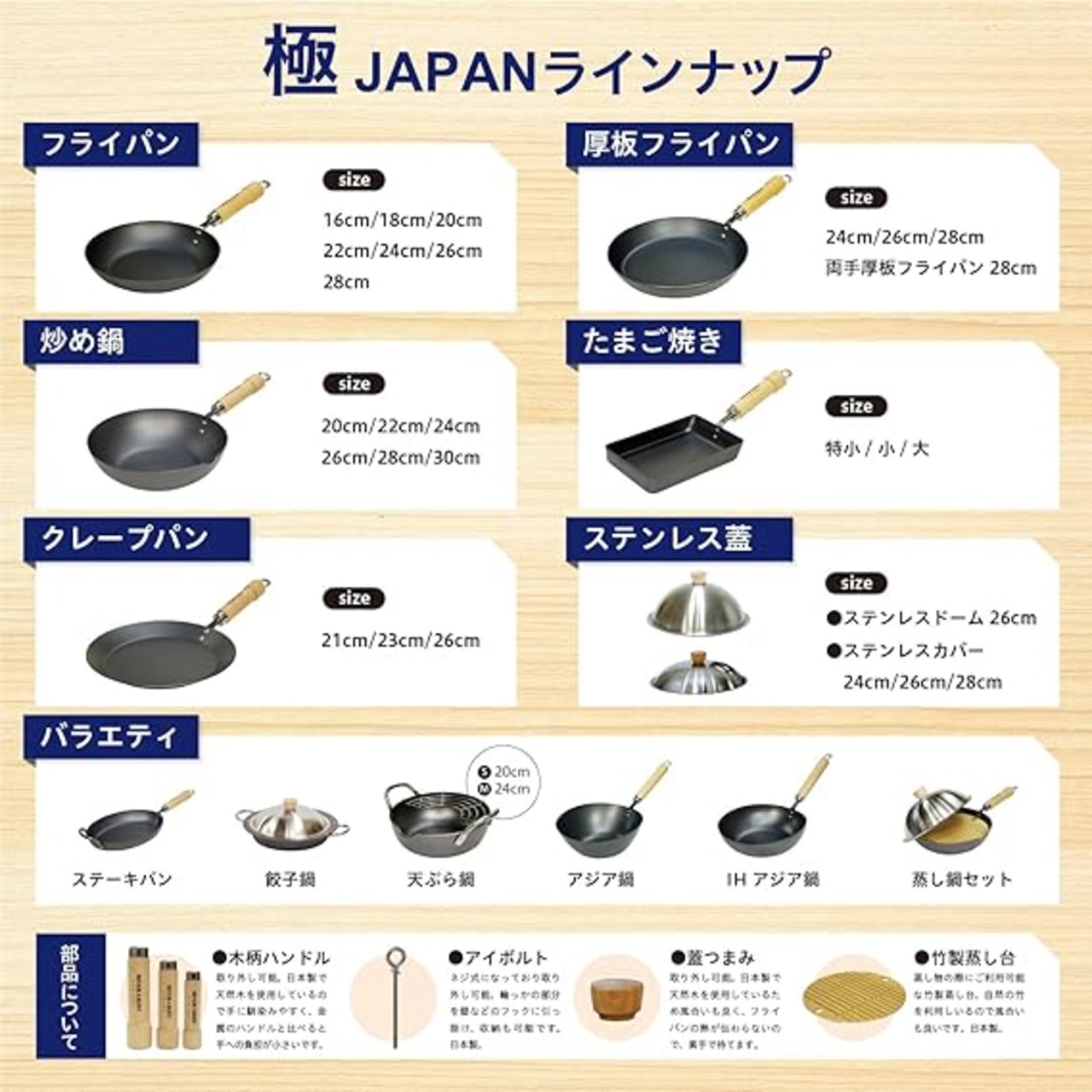 素材・材質:鍋本体/鉄(特殊熱処理済み)ハンドル/木製 フタ/ステンレス
