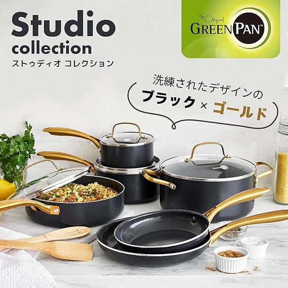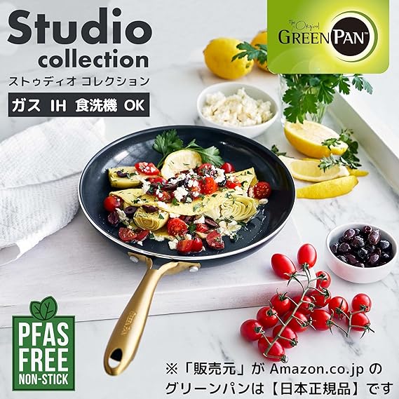 グリーンパン(Greenpan) GREENPAN ストゥディオ studio 有害物質を一切含まない砂由来のミネラル成分のセラミックコーティング フライパン 26cm IH ガス 対応 くっ付きにくい ダイヤモンド粒子配合で高い熱伝導性 ベルギー発ブランド 軽くて熱くなりにくいハンドル 食洗機対応 外面も汚れにくい 耐熱温度が高く1