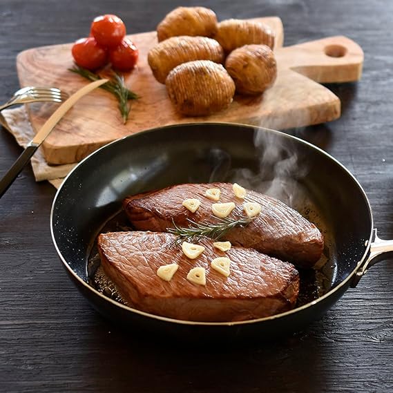 こちらの鉄フライパンは流通段階でのサビ防止・最初の使いやすさのために鍋の表面にシリコン樹脂塗装を施しています。ご使用を重ねるごとにこの塗装は剥がれていきますが、食品衛生法に適合していますので人体には無害なものです。気になる方は最初にお使いの際に塗装を焼いて落とす「空焼き」を行い、その後油ならしをしてからご使用ください。