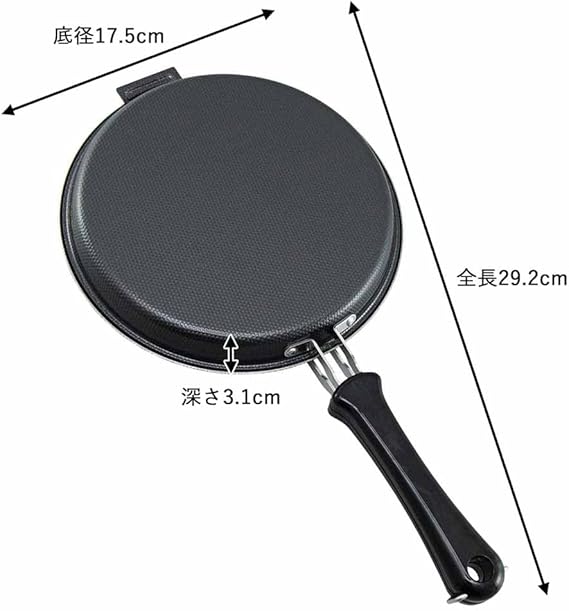 下村企販 両面フライパン 丸型 内径21.5cm 【日本製】 直火・IH対応 お好み焼き ホットケーキ ひっくり返しやすい 両面焼き 焦げつきにくい フライパンにもなる ブラック 鉄製 燕三条 364691