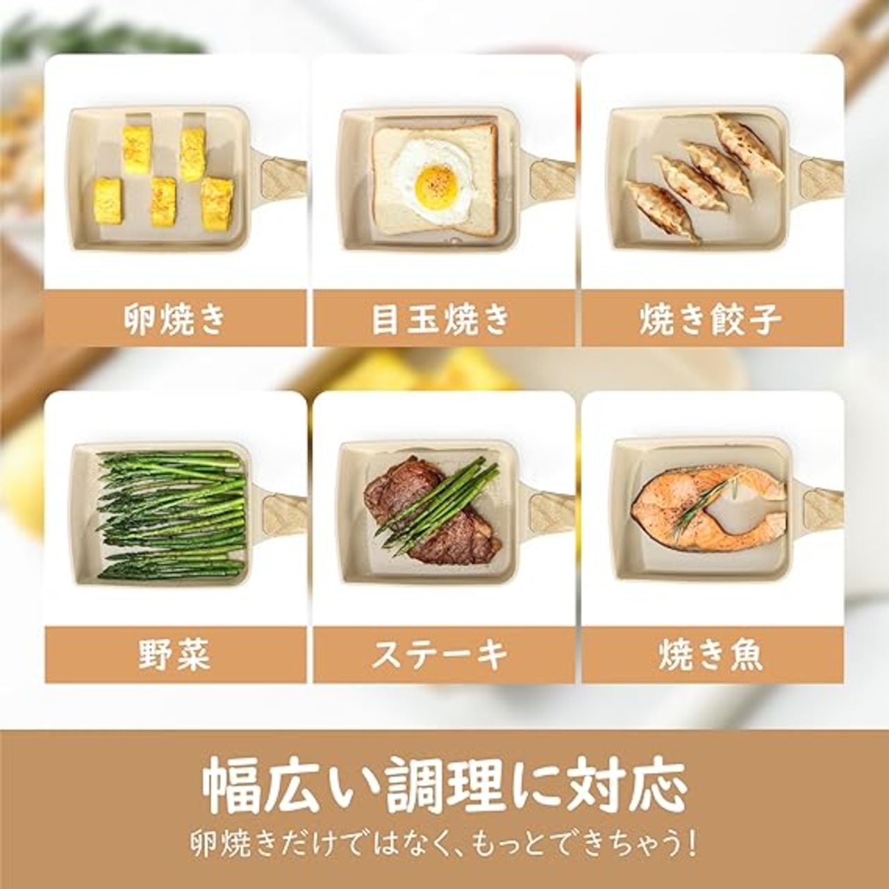 【耐熱ハンドル&お手入れ簡単】人間工学に基づいた木目調の耐熱ハンドルで、熱くなりにくく握りやすいです。調理後、ペーパータオルで拭いたり、水で簡単に洗浄できるため、お手入れが楽です。