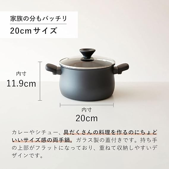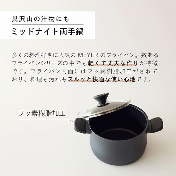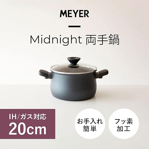 マイヤー (Meyer) フライパン 「ミッドナイト 両手鍋 20cm」 アルミニウム IH対応 フッ素樹脂加工 【国内正規品】 MNH-W201