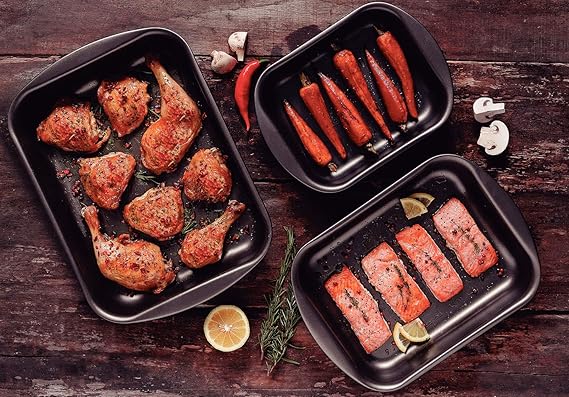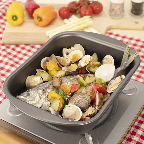 ローストチキンだけでなく、パエリア、焼き菓子などの調理にも使える便利なロースト用フライパン。