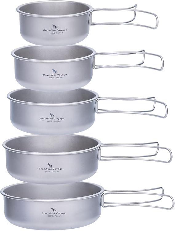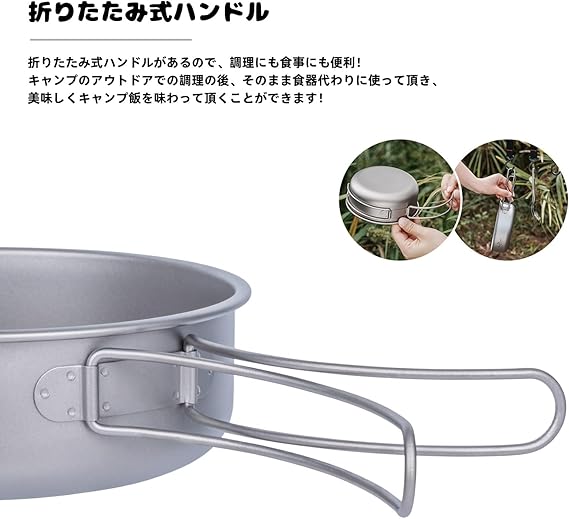 Boundless Voyage チタンクッカーセット キャンプクッカー フライパン 登山鍋 キャンピング鍋 スタッキング 持ち運びに便利 軽量 くっかーセット 調理器具 食器 アウトドア キャンプ用品 Ti1096T1