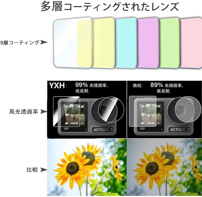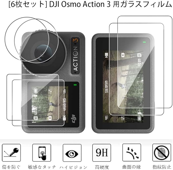 [6枚セット] DJI Osmo Action 3 用ガラスフィルム Action 3 フィルム 指紋防止 素材旭硝子製 業界最高硬度9H ライト 液晶保護フィルム [YXHH]
