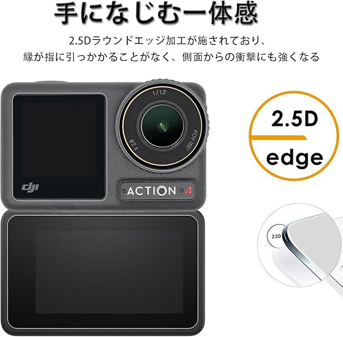 【対応機種-日本素材製】 DJI Osmo Action 4 用。日本製旭硝子素材の採用、また硬度は業界最高レベルの9Hであり、カッタ一などの鋭利なものを当てたとしても損傷なく長らく使えます。