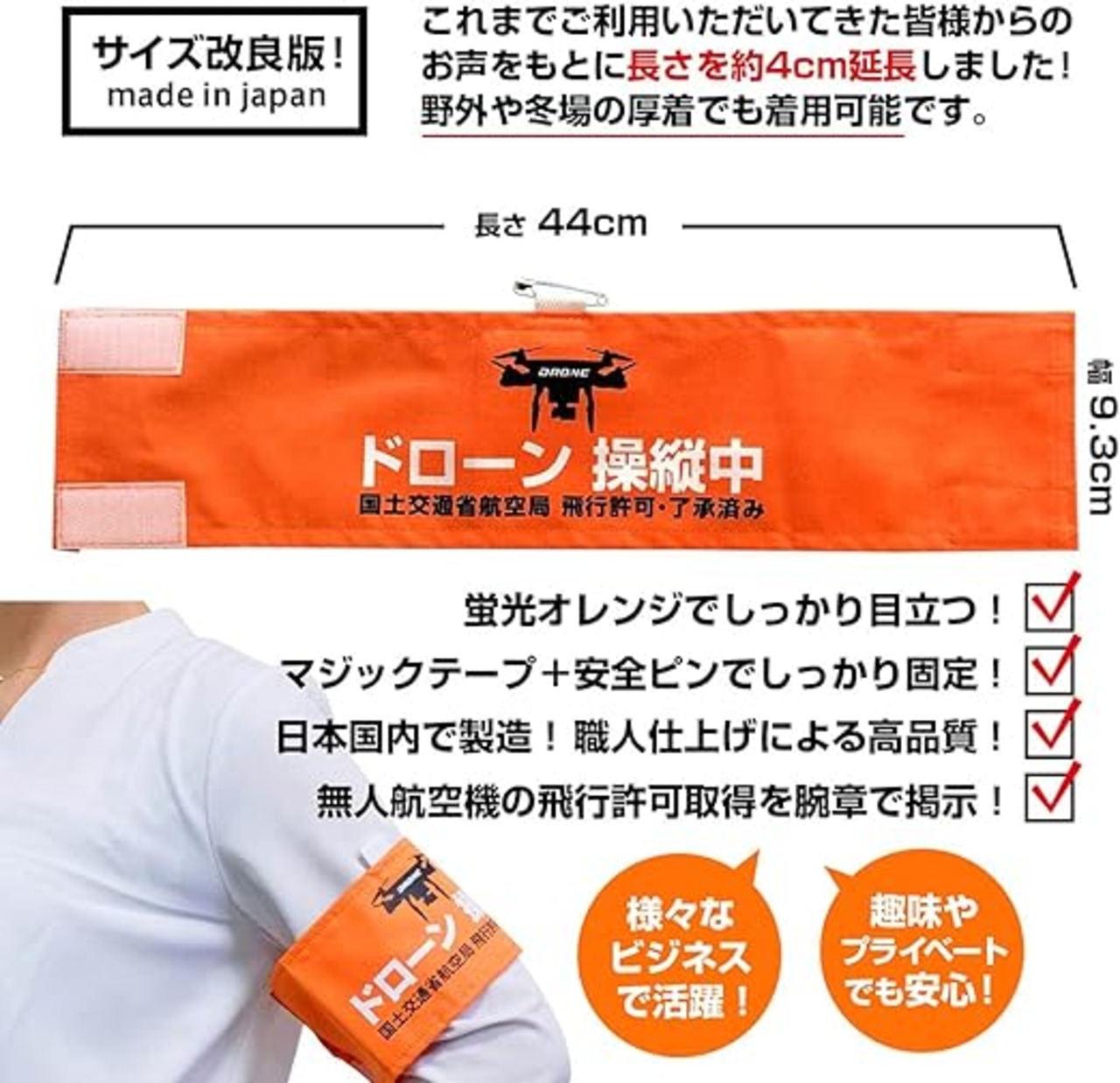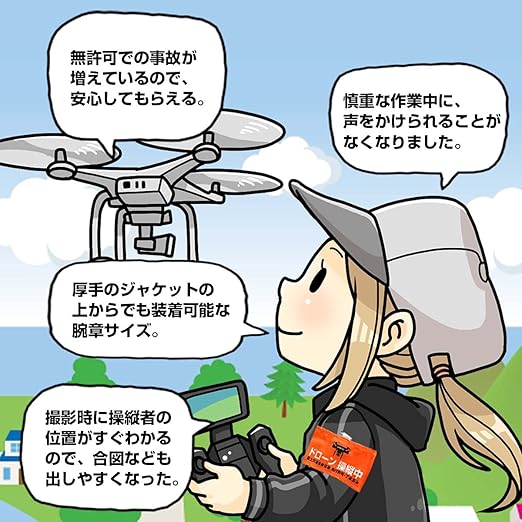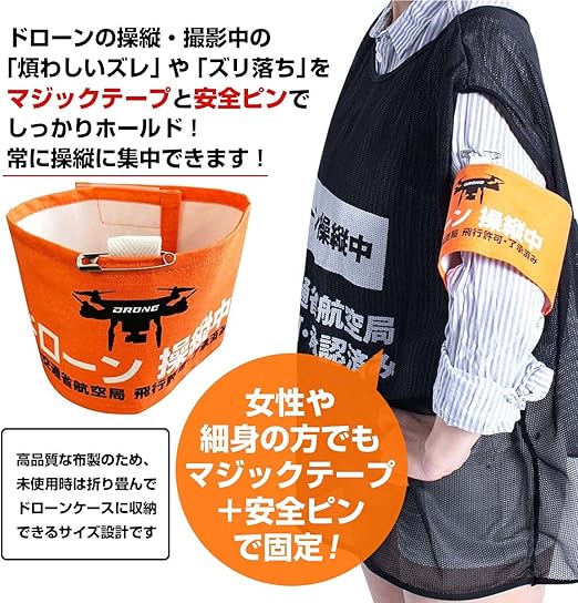 Habus ドローン 操縦用腕章 日本製 布製 DRONE 4cm延長 安全ピン付き DRONE操縦時に安心・安全