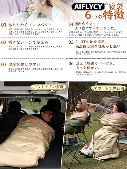 AIFLYCY 寝袋 シュラフ 封筒型 軽量 冬用 夏用【足元に二重保温・230T防水】オールシーズン 1.8Kg 1.0Kg 2.2Kg 1.4Kg コンパクト 快適温度-15℃-25℃ 簡単収納 軽量 中綿 登山 車中泊 防災用 アウトドア キャンプ 丸洗い可能 春夏秋冬の使用可能 収納袋付きB0BQ74YBW4