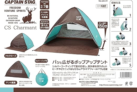 キャプテンスタッグ(CAPTAIN STAG) サンシェード ビーチテント テント CSシャルマン ポップアップテント フルクローズ