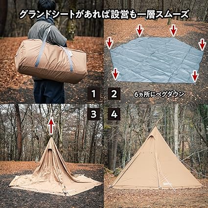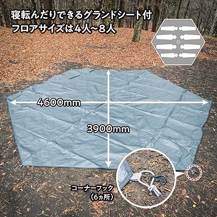 ■重量:テント14.4kg(付属品全て含む) ■スペシャルセット:グランドシートHX テントファクトリーワンポールテント専用(サイズ:4600x3900mm・材質:PE ポリエチレン)