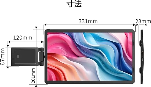 ノートPCからは取り外すことも出来ますので、持ち運び時に画面を外したり、またモニター部分を外した際には取付金具部分をスタンドにして横画面、縦画面で自立して使用可能です。*縦画面使用時に自動回転はしませんのでPC側で設定してください。また取付金具部分でテーブルなどを傷付けない様にご注意ください。