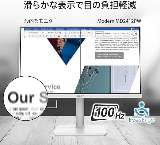 MSI Modern MD2412PW ビジネスモニター IPSパネル フルHD/23.8インチ/HDMI/USB Type-C/リフレッシュレート100Hz/ブルーライトカット/アンチフリッカー/VESA対応/ピボット・角度・高さ調整/メーカー3年保証2