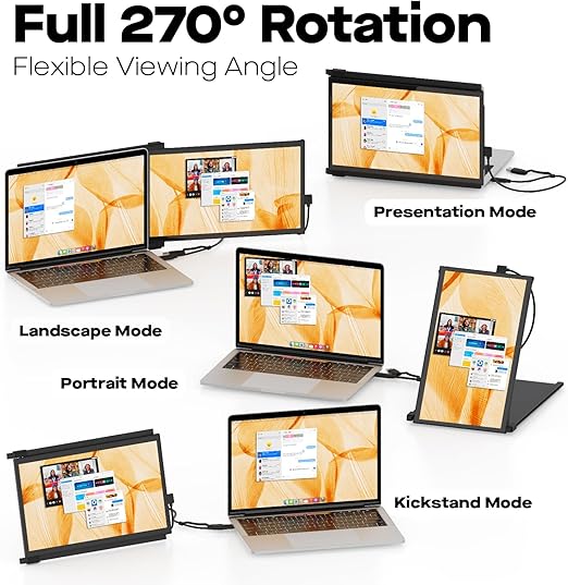自動回転ポータブルデュアルモニター:Duex Plus 13.3インチ FHD 1080P IPSウルトラスリムポータブルノートパソコンモニターの重量はわずか1.3ポンド。