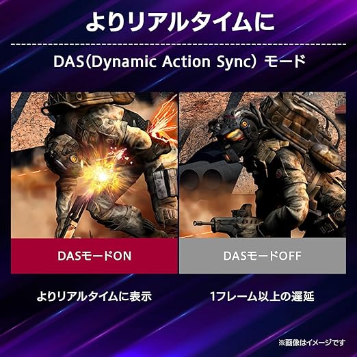 画面の遅延を抑える「DASモード」、暗いところの視認性を高める「ブラックスタビライザー」など様々なゲーミング機能を搭載。