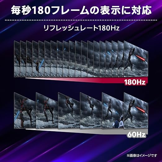 IPSパネルで1ms(GTG)の応答速度、180Hzのリフレッシュレートに対応し、ゲームの世界を美しく、滑らかに表示。