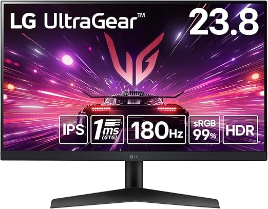 LG ゲーミングモニター UltraGear 24GS60F-B 23.8インチ/PCゲーム、家庭用ゲーム/フルHD(1920×1080) /アンチグレア/180Hz/IPS 1ms(GTG)/FreeSync? テクノロジー/G-Sync Compatible/HDR10/DisplayPort/HDMI/チルト調整対応
