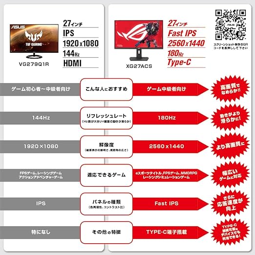 〔特徴〕プロのゲーマーと動きの速いゲームプレイのために設計された144Hz超高速リフレッシュレートを備えた27型フルHD(1920x1080)ゲーミングモニター