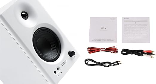 Edifier MR4 42W モニタースピーカー、PC dtm 作曲 スタジオモニター用有線外付けスピーカー、TRSバランス/RCA/AUX入力、3.5mm ヘッドホン端子出力、アンプ内蔵音質高 ホワイト