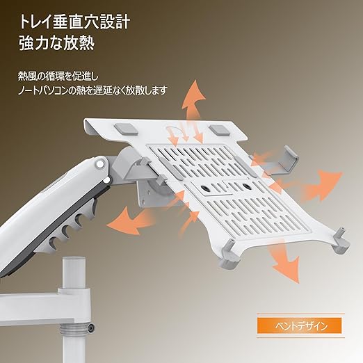 NB North Bayou ノートパソコンアーム トレイ付き 10-17インチ対応 モニターアーム 17-30インチ対応 耐荷重2-9kg ディスプレイアーム ガス圧式 クランプ式&グロメット式 (ホワイト)H100-FP-W