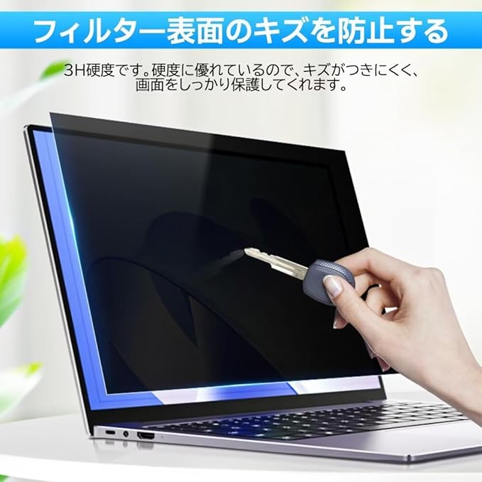 [パソコンセキュリティ対策に]画面の正面から60度(左右30度)より外側から見ても画面が黒に見え、内容を見られる心配がありません。移動中やオフィス・銀行・診察室・カフェ・飛行機・新幹線での周りからの視線を防いで安心して作業することができます。プライバシーフィルターにより、個人の情報やデータを他人から保護可能になります。