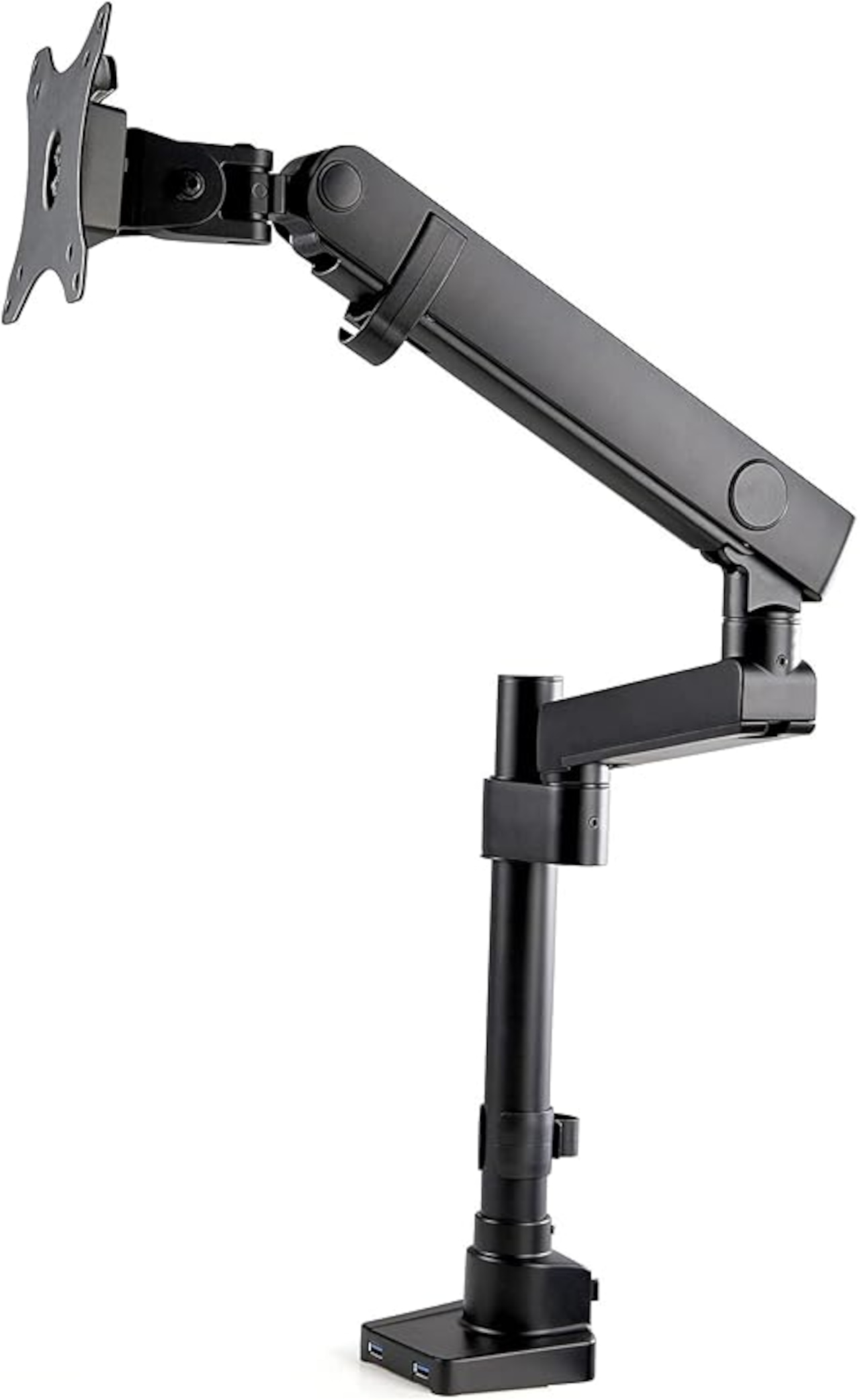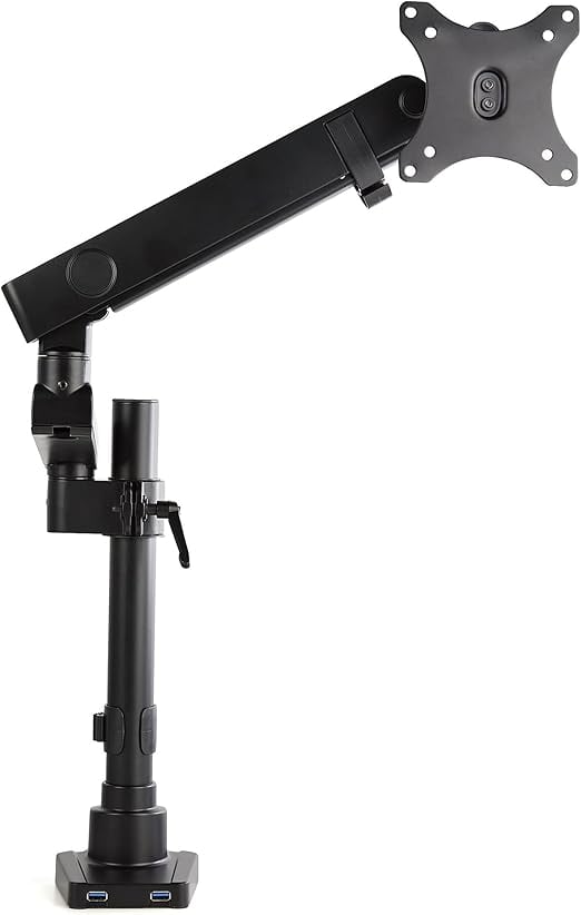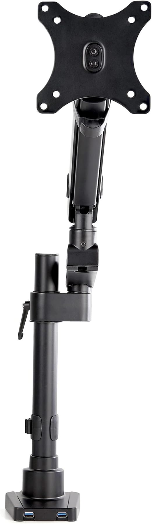 [34インチ対応の堅牢設計] VESAピッチ75x75mm/100x100mm互換の多関節シングルモニタアーム 。最大サイズ34インチまでのモニタ1台(8kg)に対応、USB 3.0パススルーポート(x2)付き