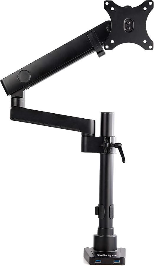 StarTech.com 液晶モニターアーム ポールマウント型 クランプ式/グロメット式 VESA規格34インチディスプレイ対応 2ポートUSBハブ搭載 ケーブル収納可能 ARMPIVOT2USB3