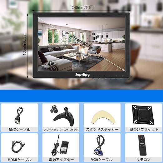 Suprlipy 10インチ FHD 小型IPSモニター LCDディスプレイスクリーン 1920x1200 60Hz 16:10 BNC VGA AV入力付き 内蔵ラウドスピーカー CCTV防犯カメラ DVR PC ゲーム機用 a