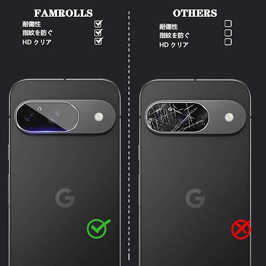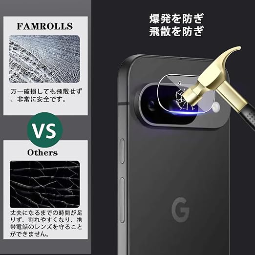 【?対応機種】 Google Pixel 9 専用。素材に日本製の旭硝子を採用。【2枚セット】2枚 用 グーグルピクセル9 強化カメラフィルム【?FAMROLLS正規品】スマホの周辺アクセサリーを長年手掛けるFAMROLLSメーカーの人気スマホカメラフィルムです。安心してご注文ください。