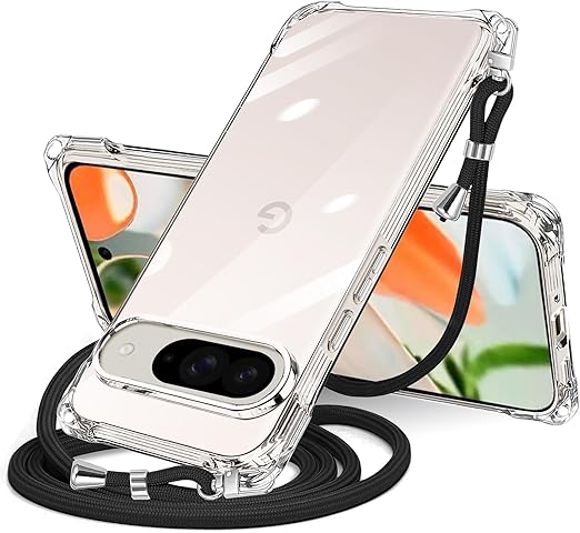 Google Pixel 9 / Pixel 9 Pro 用 ケース クリア ショルダー pixel9 / 9pro 用 スマホケース ピクセル 9 カバー 肩掛け 斜めかけ 縄掛けケース 透明 薄型 軽量 TPU 紐付き 斜めがけ 織りストラップ付き ネックストラップ ショルダー ケース 縦/横 2WAY 長さ調整可能 取り外し可能 落下防止 紛失防止 ワイヤレス充電対応 (クリア)1