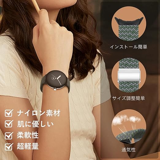 【対応機種】Google Pixel Watch / Google Pixel Watch 2 に対応ナイロン素材のブレイデッド バンドです。