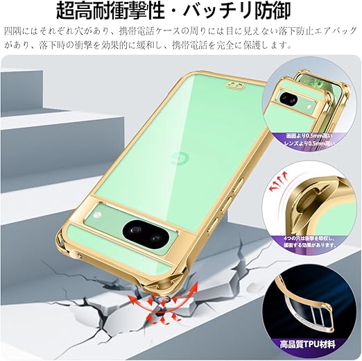 Google Pixel 8a ケース クリア ショルダー Google Pixel 8a スマホケース 携帯ストラップ ピクセル8a カバー 肩掛け 斜めかけ 縄掛けケース 透明 薄型 軽量 TPU 携帯ケース 紐付き 斜めがけ 織りストラップ付き 長さ調整可能 取り外し可能 落下防止 紛失防止(ゴールド)1