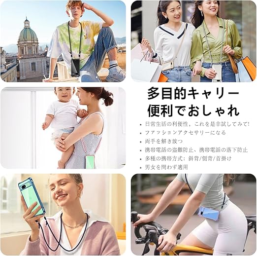 【ショルダーストラップ 付き】電話ケースの特別な四隅のデザインにより、ストラップを