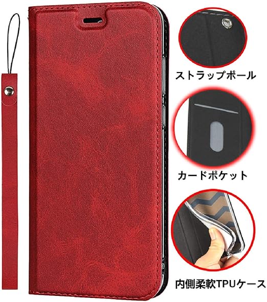 グーグル ピクセル4ケース 手帳型Google pixel 4 スマホケース 携帯カバー Google pixel 4 ケースJaorty 内蔵マグネットPUレザーカード収納 横置きスタンド 機能 軽量 超薄型 ベルト付き?レッド1