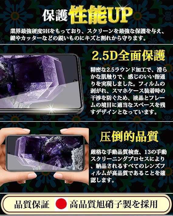 Google Pixel 8 ガラスフィルム グーグル ピクセル 8 保護フィルム Pixel8 強化ガラス【全面保護-2枚入り】硬度9H 日本製旭硝子製 飛散防止 高透過率 自動吸着 気泡防止 撥水撥油 指紋認証対応 衝撃吸収1